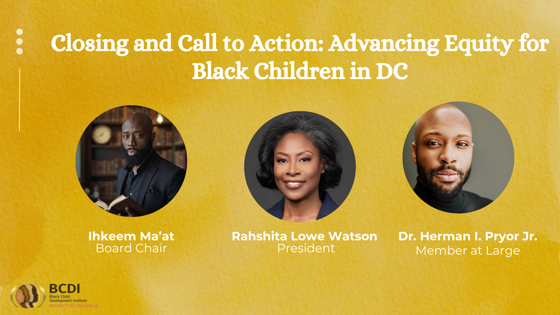 BCDI-DC Leadership: Rahshita Lowe-Watson, Ihkeem Ma’at, and Dr. Herman I.Pryor, Jr., Member-at-Large Board Member