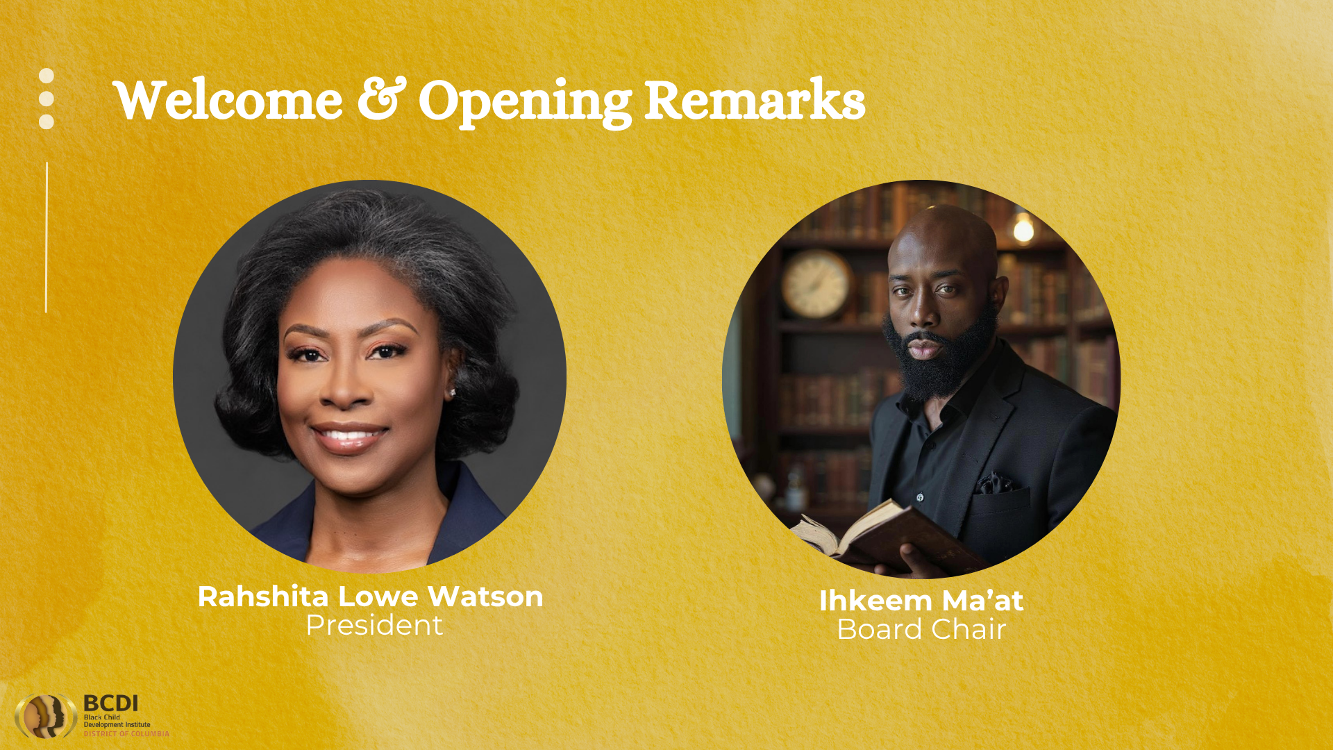 Black Child Development Institute–DC Leadership: Ihkeem Ma’at, Board Chair, and Rahshita Lowe-Watson, President.