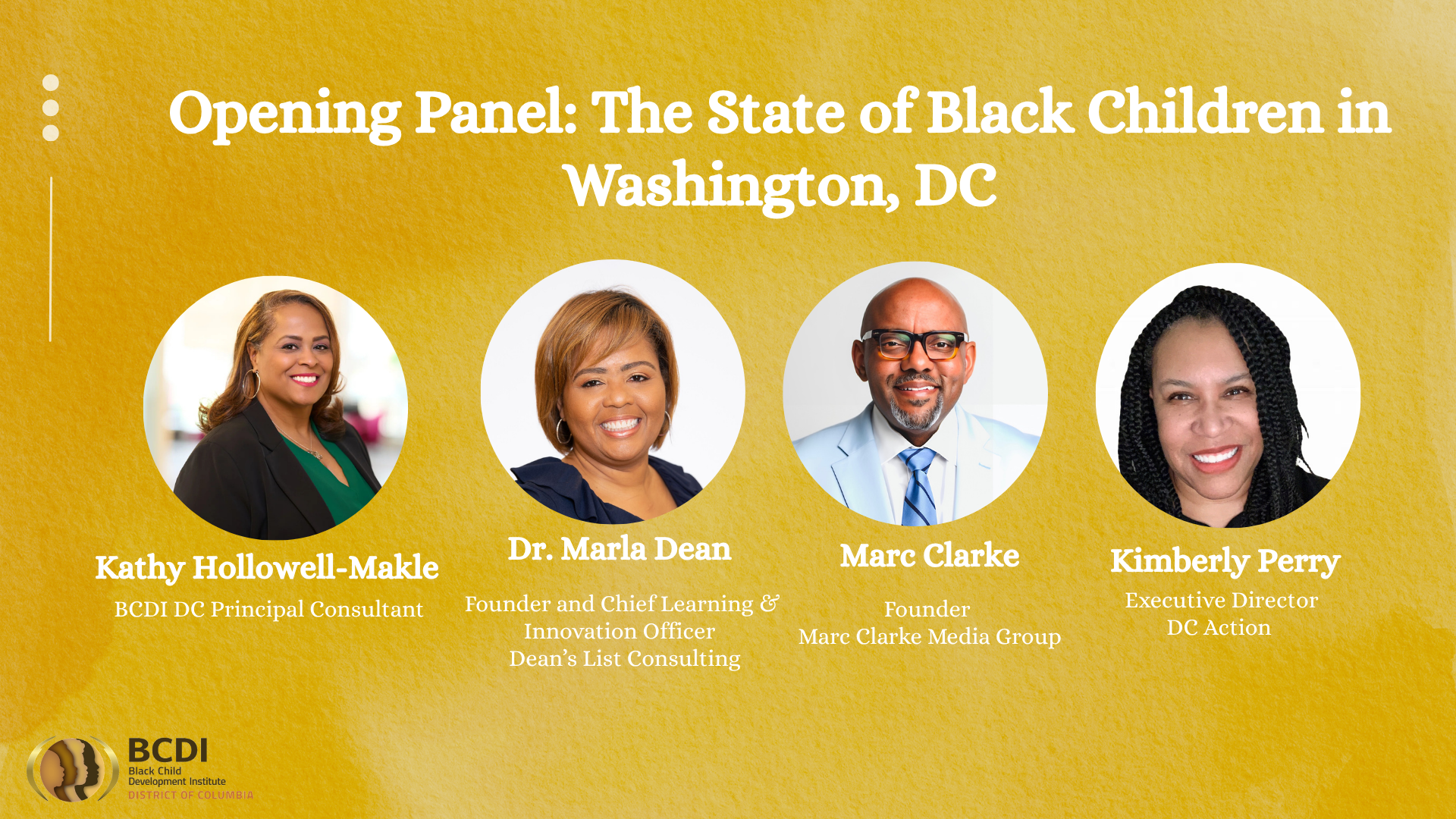 Panelists: Marc Clarke, Marc Clarke Media Group; Dr. Marla Dean, Dean’s List Consulting; Kimberly Perry, DC Action