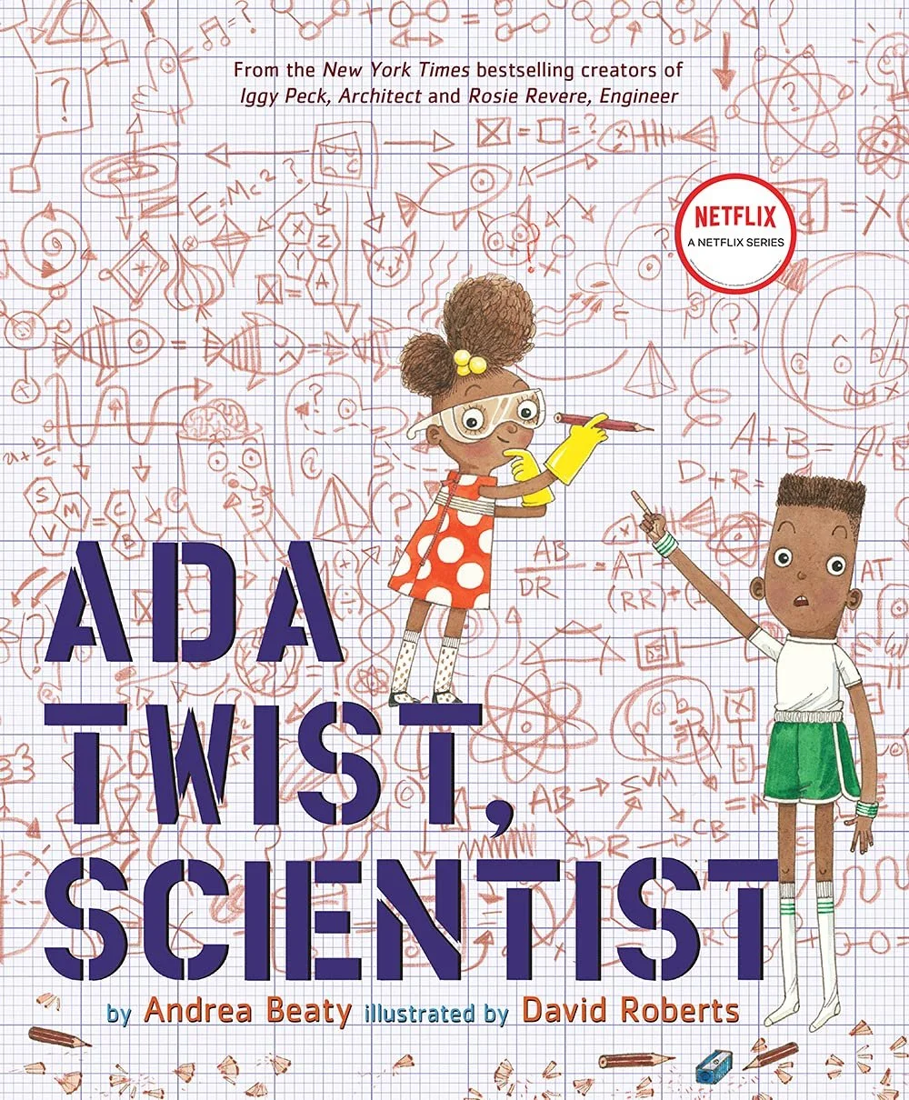 Ada Twist, Scientist by Andrea Beaty (illustrated by David Roberts) is a popular children's picture book about a curious girl who loves science and asks endless questions, inspired by real-life scientists like Ada Lovelace and Marie Curie. The rhyming story follows Ada as she uses scientific methods to solve everyday problems, like a mysterious bad smell in her house, learning about perseverance and the importance of asking "why" even when experiments go wrong
